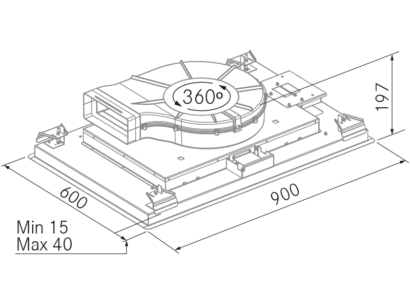 – Potencia de aspiração mín./int.: 215/702 m³/h.
